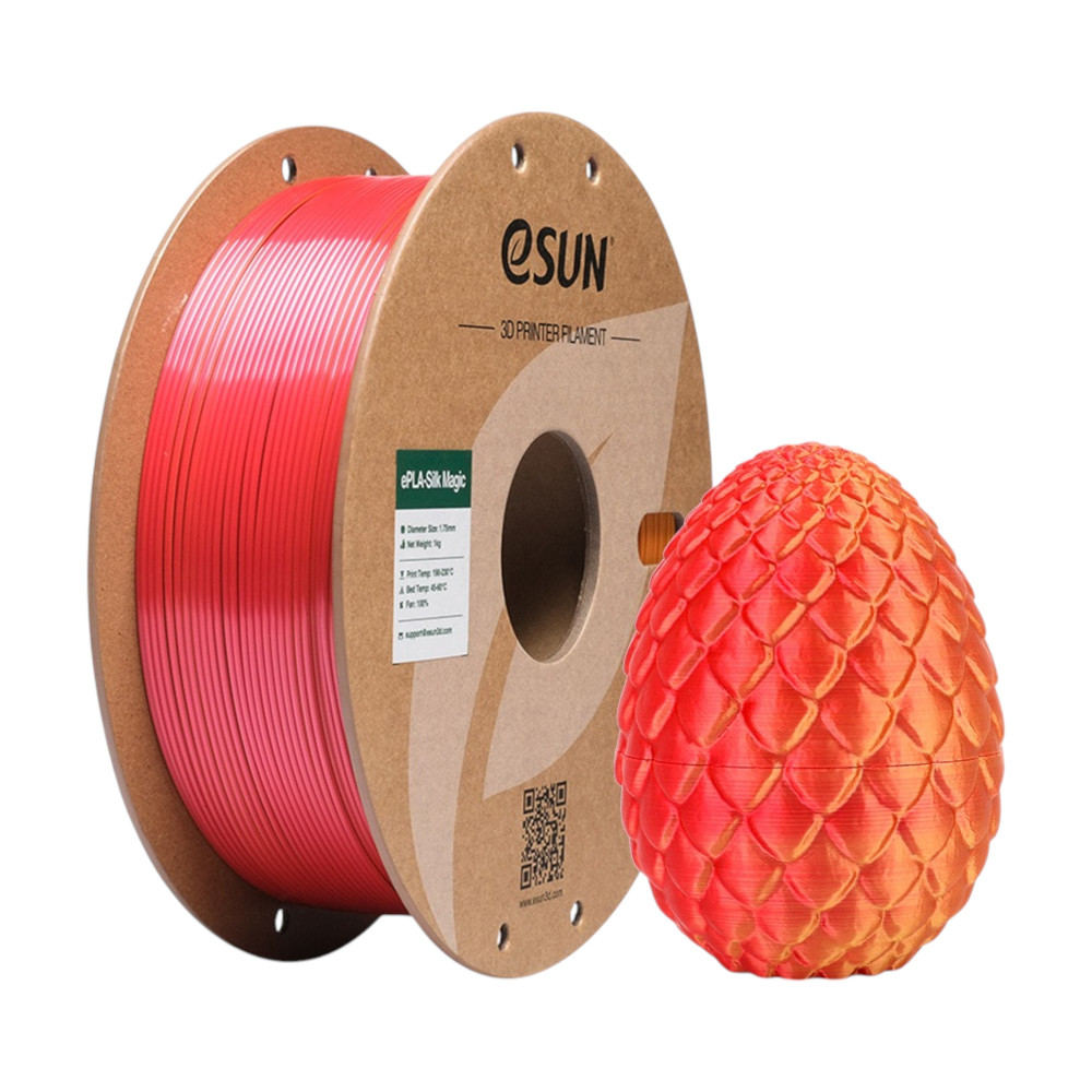 Como o mais recente produto do eSUN, o eSilk-pla é modificado pela adição de materiais com efeitos brilhantes ao PLA para dar uma aparência mais brilhante.