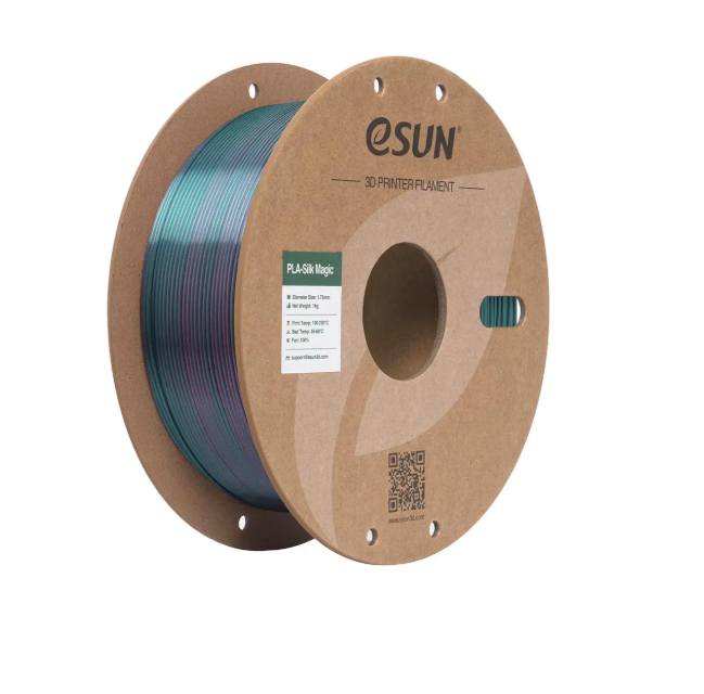 Como o mais recente produto do eSUN, o eSilk-pla é modificado pela adição de materiais com efeitos brilhantes ao PLA para dar uma aparência mais brilhante.