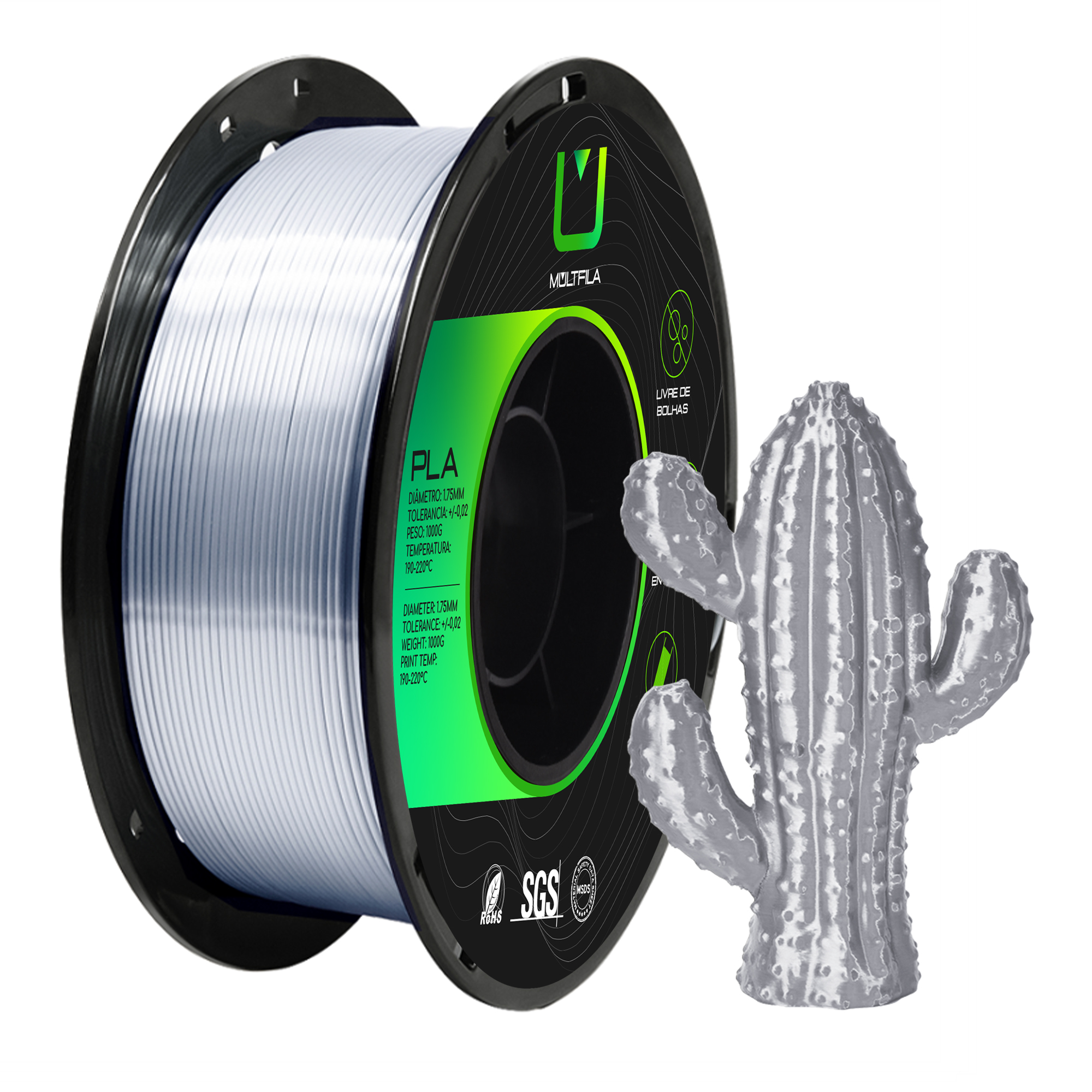 Filamento PLA SILK Multifila 1KG Prata